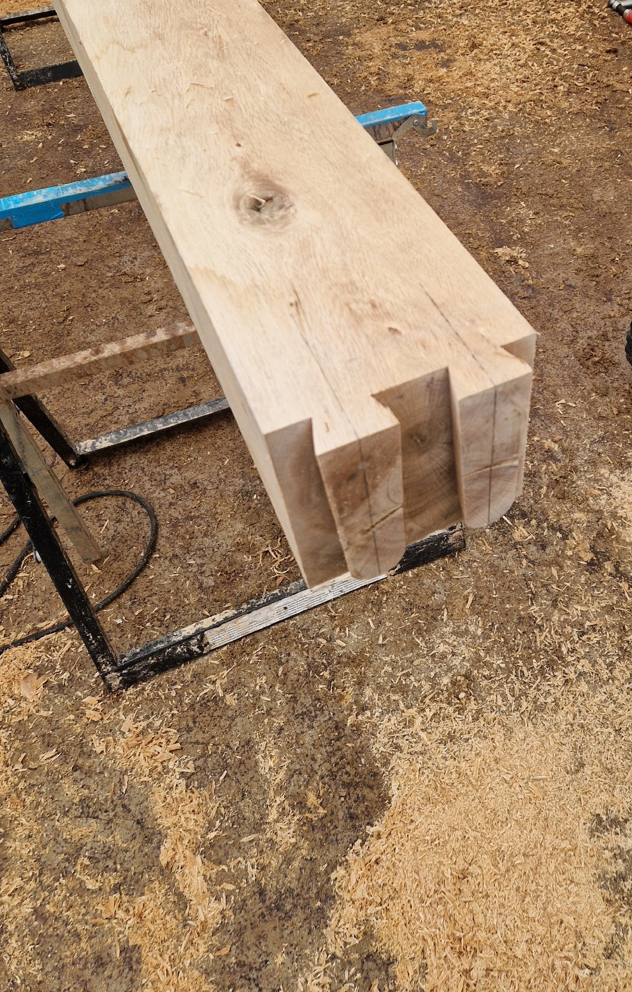 Onze projecten worden vooraf volledig uitgewerkt. Op de werf worden alle verbindingen (zoals pen-en-gat- en zwaluwstaartverbindingen) ter plaatse gemaakt met professionele handgereedschapsmachines van Mafell. Dit biedt het voordeel dat we flexibel kunnen inspelen op onvoorziene situaties en dat kleine aanpassingen op vraag van de klant nog steeds mogelijk zijn.